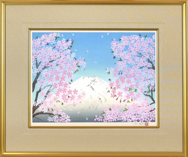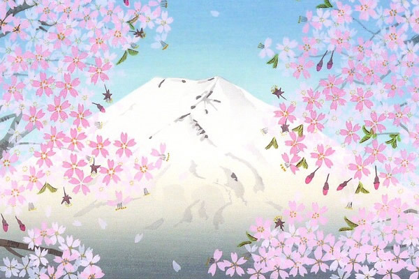 Fuji in Spring, woodcut by Chinami NAKAJIMA