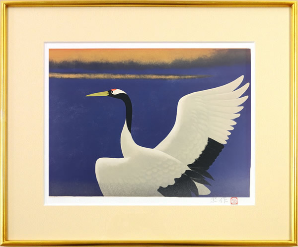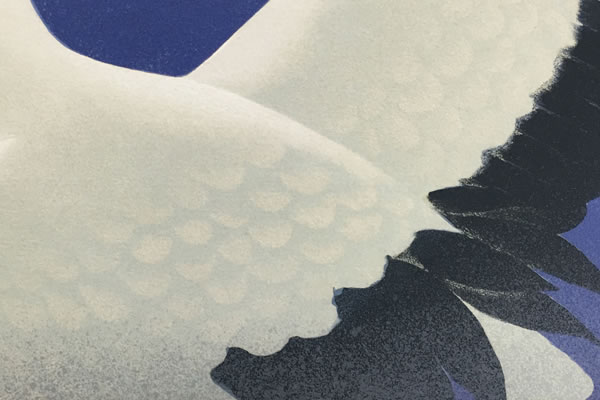 Red-crowned crane (left), silkscreen by Shoko UEMURARed-crowned Crane (left)