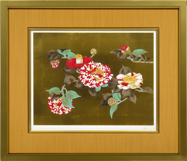 White Camellia, lithograph by Masataka OYABUWhite Camellia