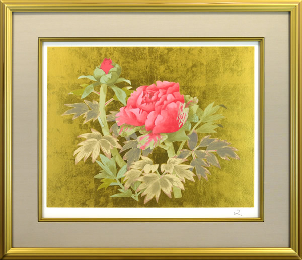Red and White Peonies, lithograph by Toshio MATSUORed and White Peonies