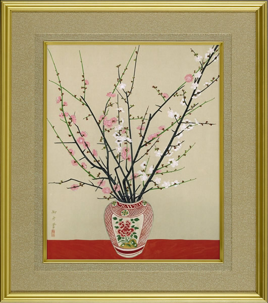 Plum Blossoms in a Vase, woodcut by Gyoshu HAYAMI