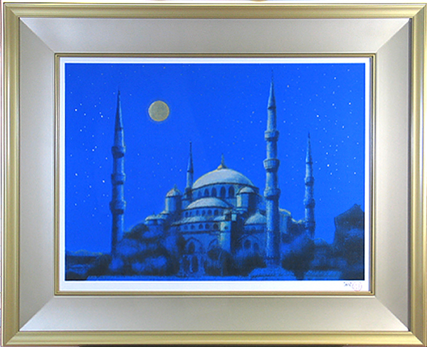 Silver Moon over the Blue Mosque, Istanbul, lithograph by Ikuo HIRAYAMA