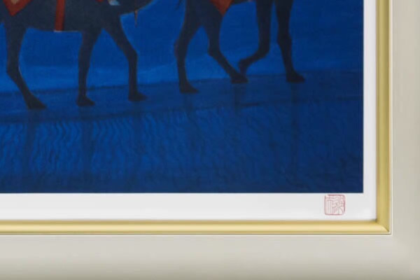 Camels Crossing the Afghan Desert, Moon, lithograph, silkscreen by Ikuo HIRAYAMA