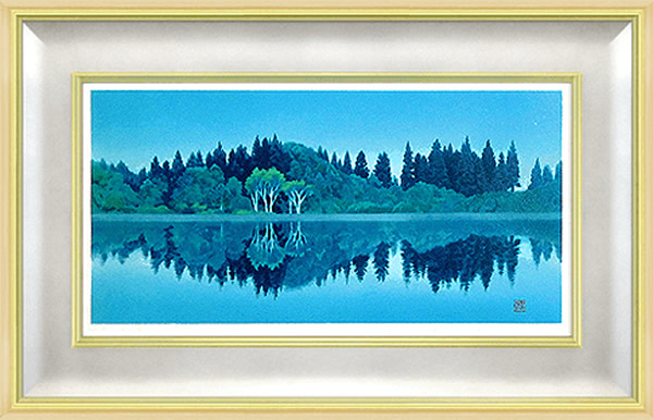 Early Morning Lake, lithograph by Chikuhaku SUZUKIEarly Morning Lake