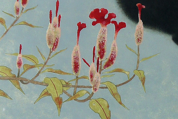 Flowers and Cat, lithograph by Kayo YAMAGUCHI