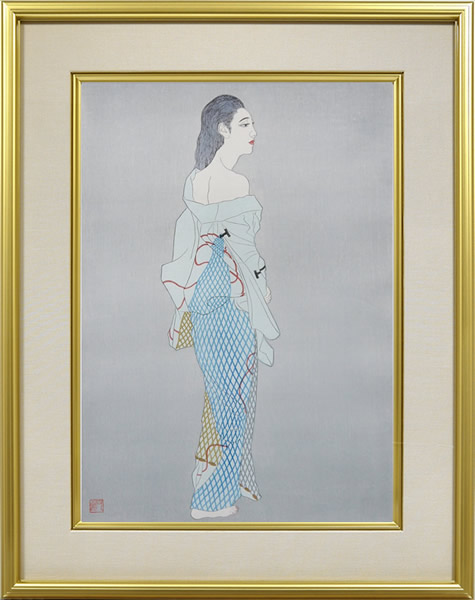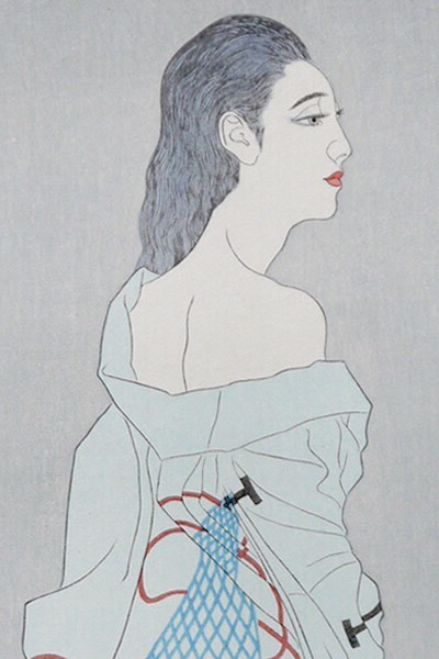 Hoshi-ami (Clothes with Mesh-patterned Print), woodcut by Matazo KAYAMA