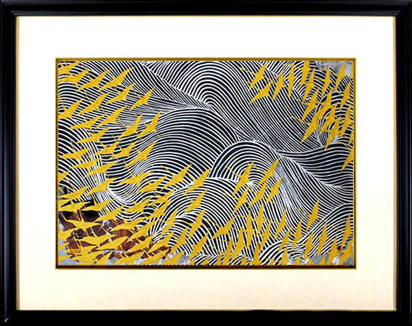 1958 - Exhibited Winter (1957) and Flocking Crows (1956) in the "European Touring Exhibition of Contemporary Japanese Painting", shown at 11 cities in 6 countries. In September, exhibited the screen painting. Waves in Summer, Waves in Winter in the 22th Shin-Seisaku Exhibition. Exhibited Flight (1957) in the 2th Guggenheim Award International Art Exhibition", and received the Group Award with Kawabata Minoru and Yamaguchi Takeo.