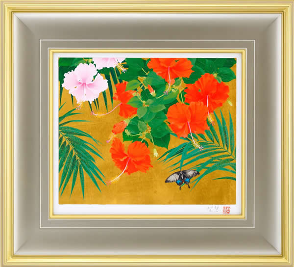 Hibiscus and Butterfly, silkscreen by Rieko MORITA