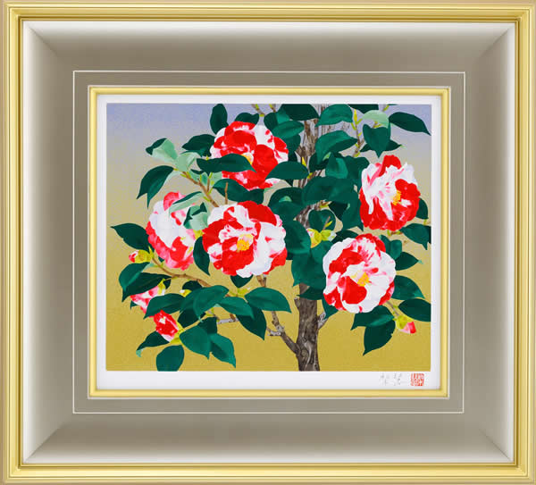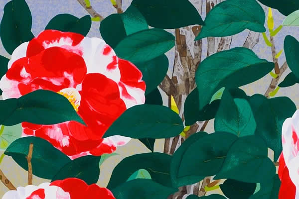 Double-flowered Camellia Tree, silkscreen by Rieko MORITA