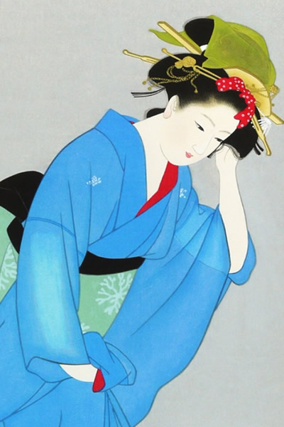 Theme bijinga, bijin-ga, beautiful woman, kimono