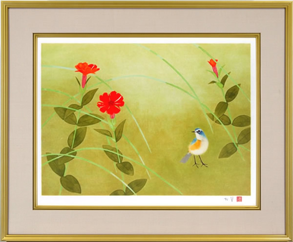 Blue-and-white Flycatcher, lithograph by Atsushi UEMURABlue-and-white Flycatcher