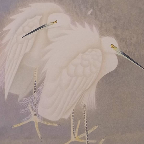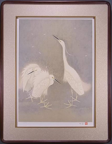 Red-crowned crane (left), silkscreen by Shoko UEMURARed-crowned Crane (left)