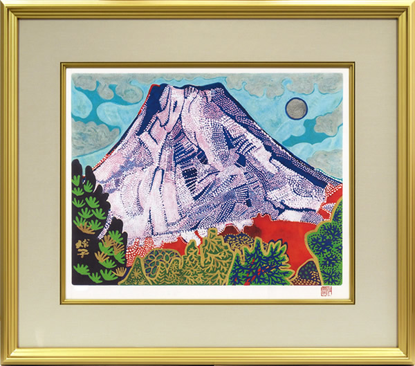 Auspicious Red Mt. Fuji, lithograph by Tamako KATAOKAAuspicious Red Mt. Fuji