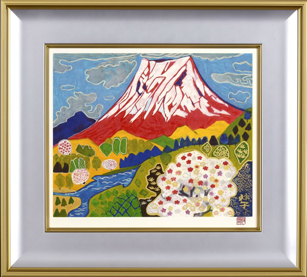 Auspicious Red Mt. Fuji, lithograph by Tamako KATAOKAAuspicious Red Mt. Fuji