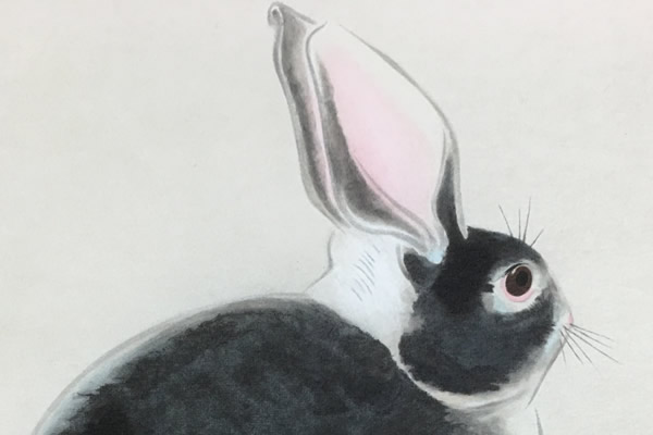 Rabbits, woodcut by Seiho TAKEUCHIRabbits