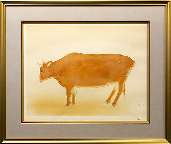 Cow, lithograph by Togyu OKUMURA