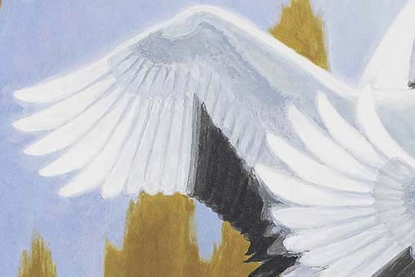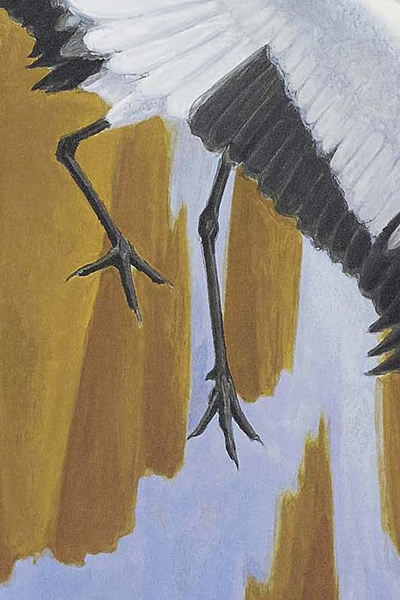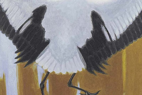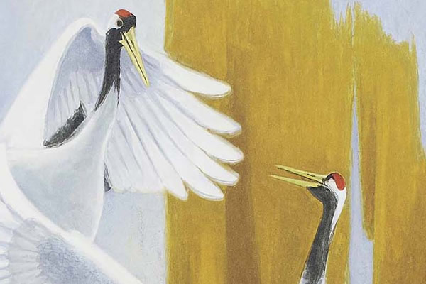 Red-crowned crane (right), silkscreen by Shoko UEMURARed-crowned Crane (right)