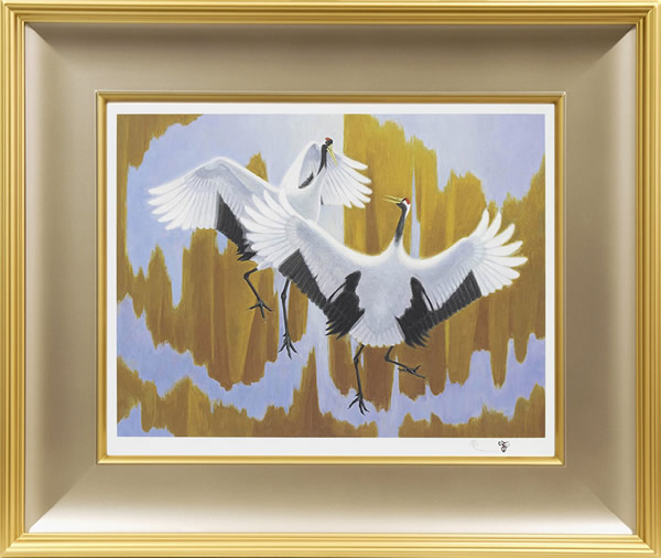 Sunrise with Flying Cranes, lithograph by Chusaku OYAMASunrise with Flying Cranes
